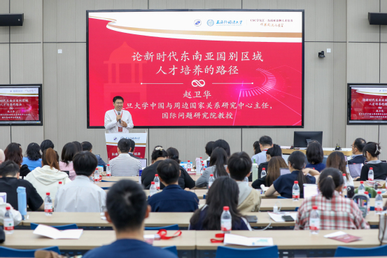 上午的主旨发言环节由上外东方语学院院长程彤主持,六位专家教授从不同角度分享了各自学校在AI时代东南亚语种人才培养方面的探索与创新。国防科技大学外国语学院亚非语言文化系主任唐慧教授聚焦AI时代外语非通用语专业面临的挑战,提出技术赋能语言教学的创新路径。北京大学外国语学院东南亚系主任史阳副教授结合自身的菲律宾田野调查实践以及在北大多年的任教经验,探讨了新时代跨学科视阈下东方文学研究的实践与教学。北京外国语大学亚洲学院副院长顾佳赟副教授基于北外东南亚语种专业近年来对“非通用语+通用语+专业+地方知识”建设模式的探索经验,分析了东南亚语种专业建设的未来方向。复旦大学中国与周边国家关系研究中心主任赵卫华教授以本人先历史、国际政治而后加越南语的求学经历,结合个人多年深耕越南国别研究的经验,阐述了新时代人才培养的多元路径。复旦大学国际问题研究院副研究员薛松探讨了AI技术与区域国别学科转型背景下外语专业学生的机遇与挑战。上海外国语大学越南语专业主任冯超副教授则介绍了上外东方语学院东南亚语种专业近年来复合型人才培养模式的成果与思考。