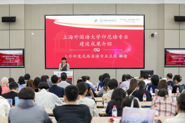 在随后的上外印尼语专业复建二十周年纪念环节,印尼语专业主任郁倩老师汇报了印尼语专业的历史沿革、复建二十年来在人才培养、师资建设、科学研究以及国际合作等方面的成果,并展望了专业改革发展方向。